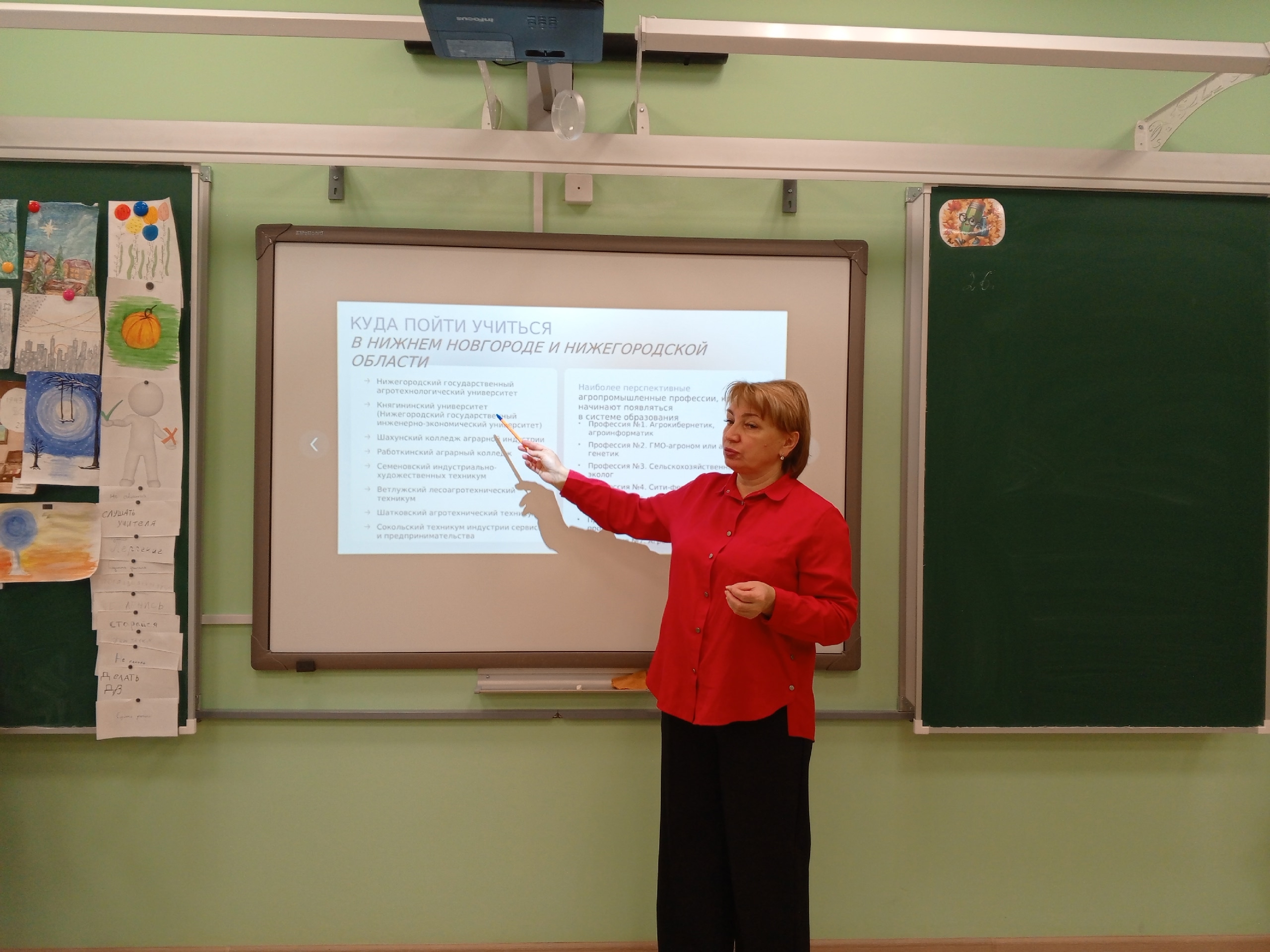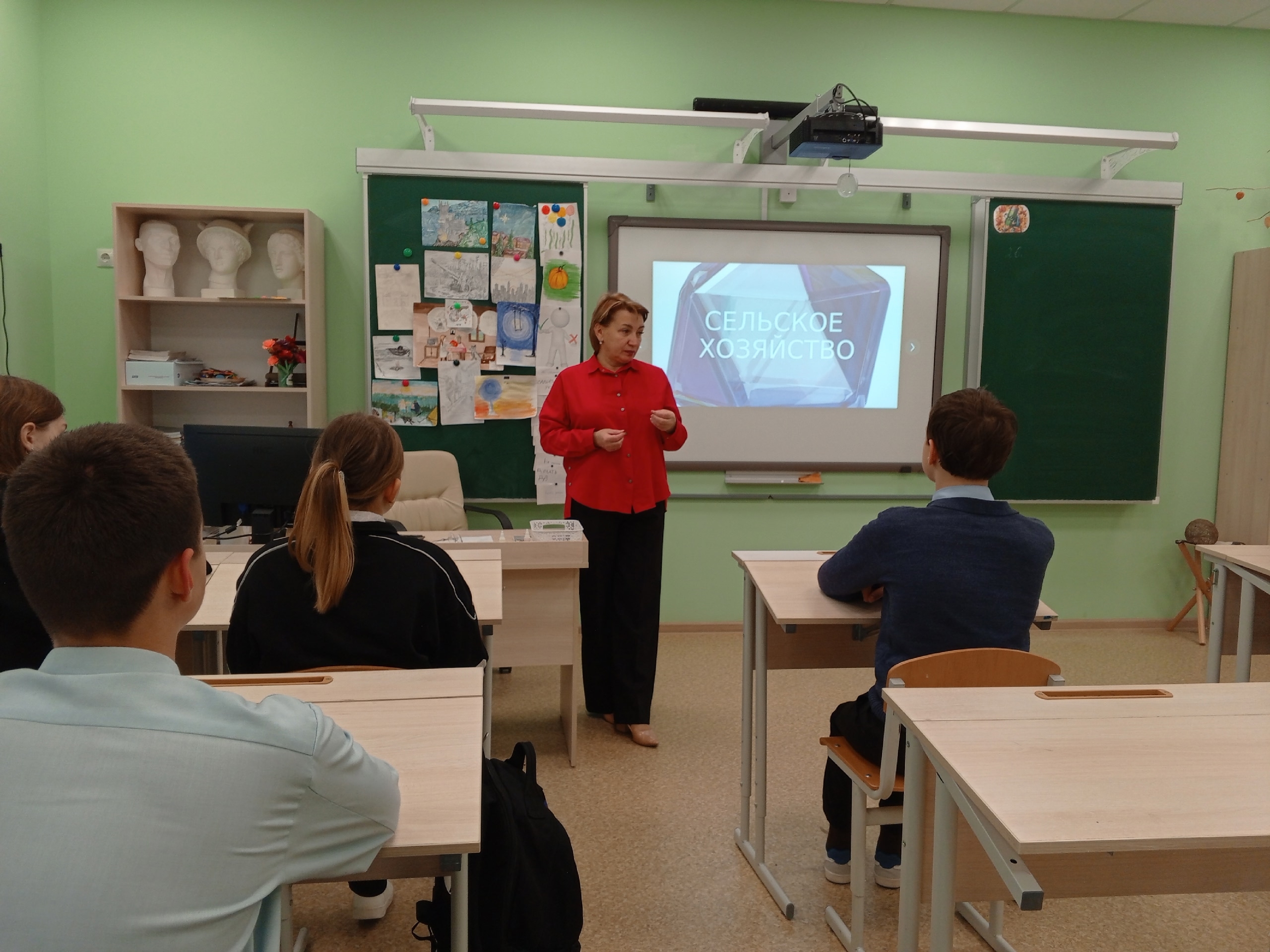 Классный руководитель Гладилина О.В. провела увлекательное занятие для учеников предпринимательского класса, посвященное профессиональному ориентированию в сфере сельского хозяйства Нижегородской области.