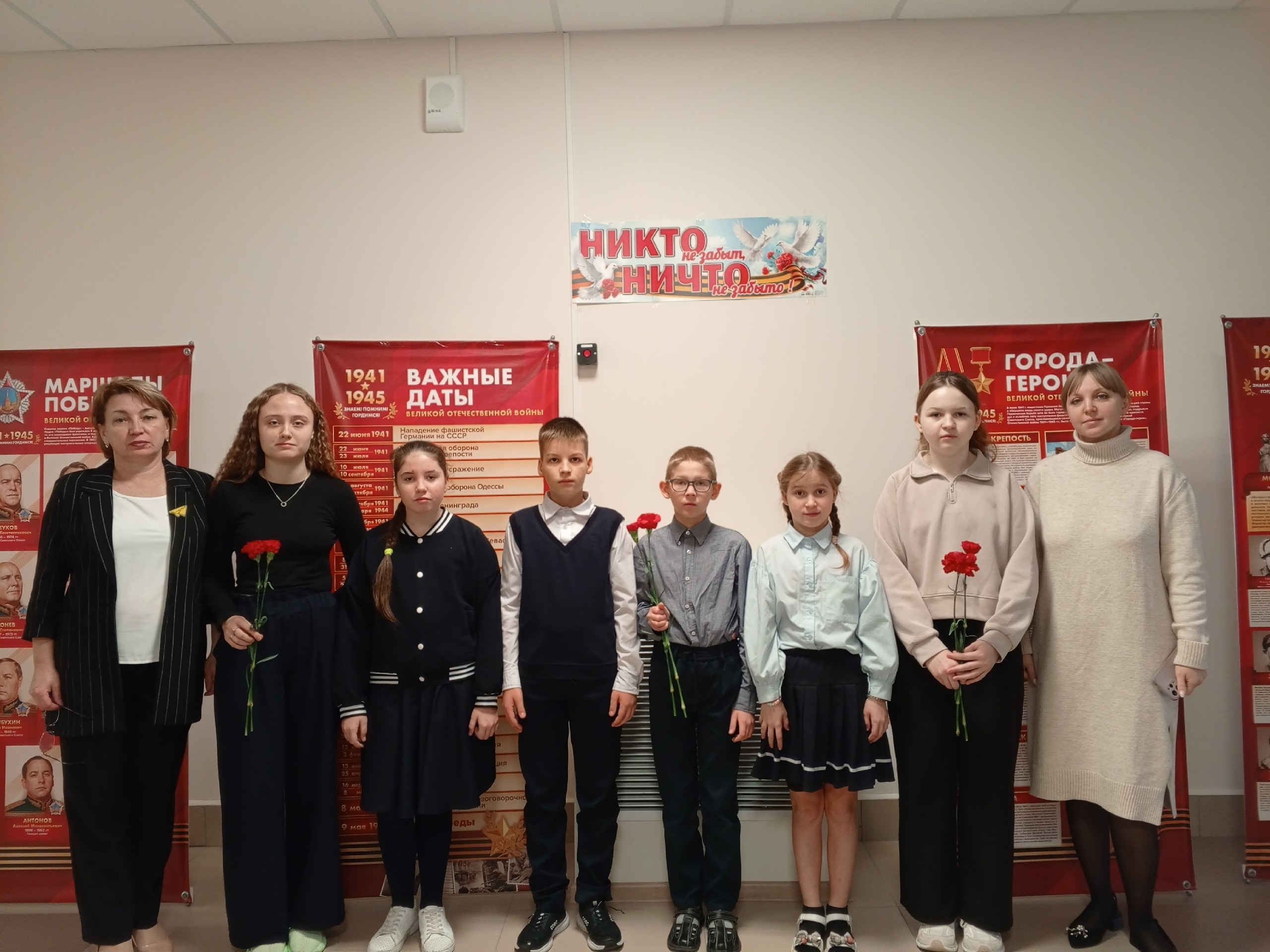 В Фокинской средней школе активисты Движения Первых собрались около памятника павшим героям, чтобы почтить их память минутой молчания. Завершилась церемония возложения цветов и венков к памятнику, символизирующему вечную признательность народа героям-защитникам Отечества.