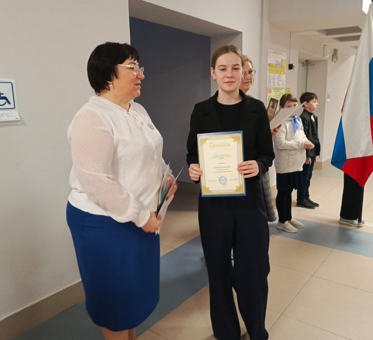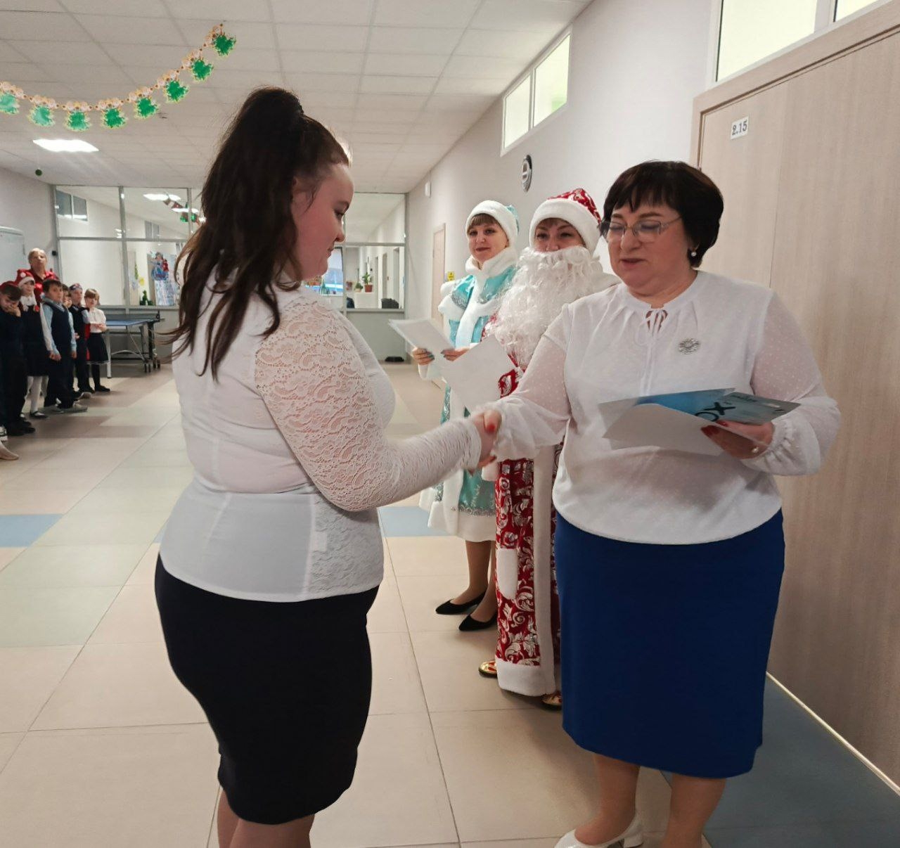 И начались поздравления! Вручили грамоты, благодарности за победы в олимпиадах, конкурсах, соревнованиях. Специальный приз от Деда Мороза получили классы с наибольшим показателем качества обучения. ими оказались 3 и 6 класс, поздравляем! Снегурочка поблагодарила всех наших артистов за замечательный новогодний спектакль. Юным орлятам России вручили сертификаты о прохождении очередного трека и грамоты за победы в конкурсах