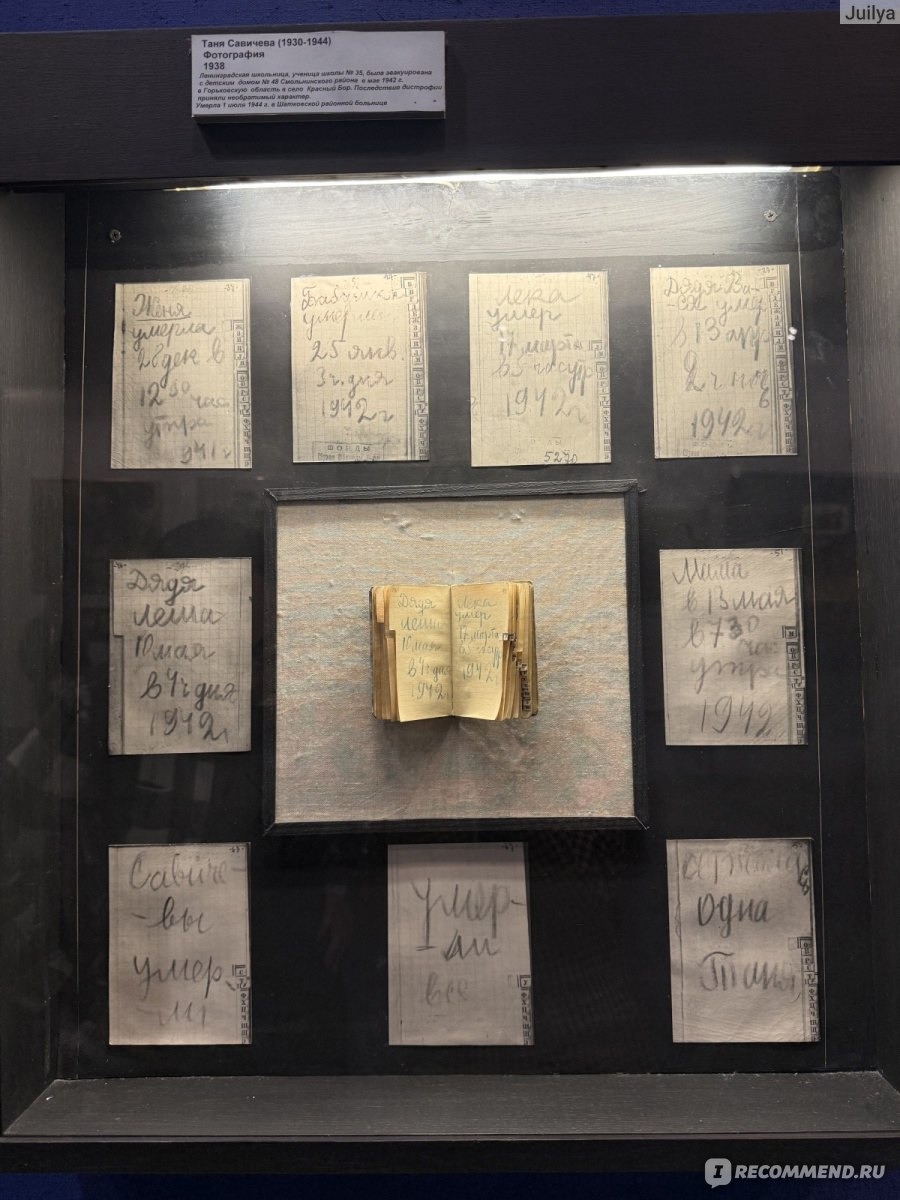 Маленькую записную книжку с 9 страшными записями, начертанными карандашом нетвёрдой детской рукой, сестра Нина, которая вернулась в Ленинград уже после снятия блокады, нашла у Евдокии. По воле случая дневник маленькой девочки, похоронившей свою семью, увидел знакомый Нины, учёный секретарь Эрмитажа. Так история жизни и смерти простой ленинградской школьницы Тани Савичевой в 1946 году попала на выставку «Героическая оборона Ленинграда». Сегодня 9 листочков из дневника девочки Тани хранятся в «Государственном Музее истории Санкт-Петербурга», а копии их разошлись по всему свету как память о маленькой девочке, описавшей свою, детскую историю страшной войны.
