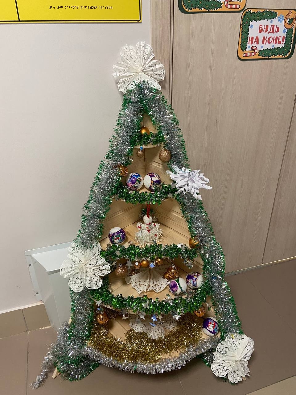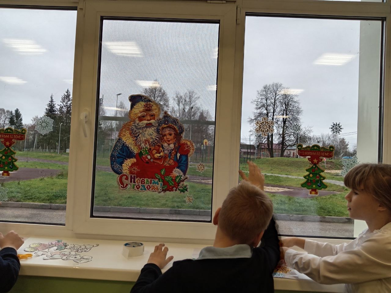 ✨Повсюду царствуют новогодние символы: окна украшены рисунками Деда Мороза и Снегурочки, выполненными детскими руками, яркие гирлянды сияют мягким светом, вызывая улыбки и восхищение. А главное украшение праздника — ёлочка, созданная учениками, радует глаз и подчёркивает индивидуальность каждой возрастной группы.