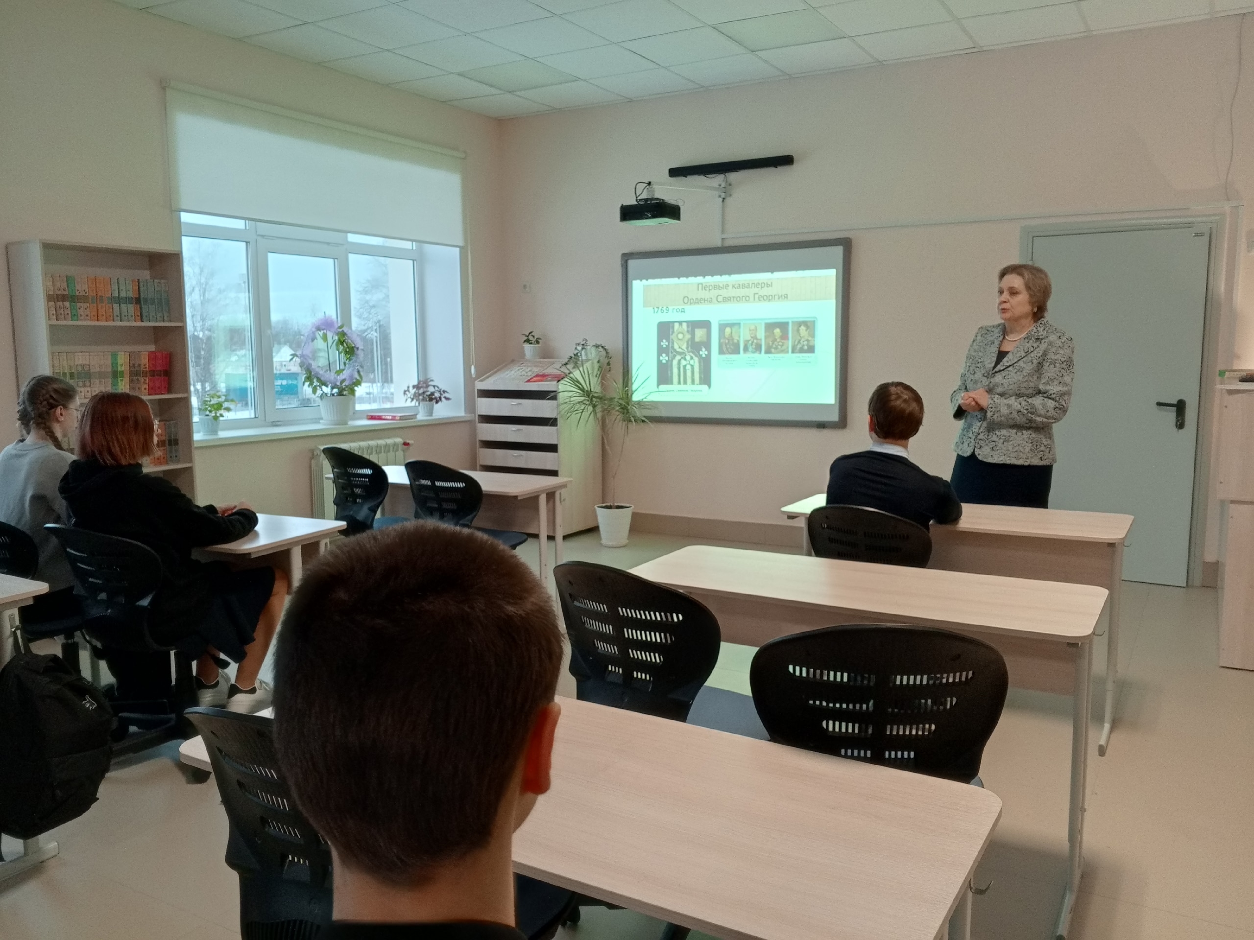 В ходе беседы ребята еще раз вспомнили подвиги героев прошлых лет, каких как князя Александра Невского и полных кавалеров ордена Святого Георгия Победоносца — М. И. Кутузова, М. Б. Барклая -де- Толли, И. Ф. Паскевича, И. И. Дибича- Забалканского. До учреждения государством орденов тема героизма поднималась в православных хрониках — житиях и причисления реальных людей к ликам святых. Например — сподвижник императора Григорий в последствии Победоносец и князь Александр Невский. Участники рассказали каким они видят личность героя, почему поступок, который он совершил, является подвигом для нас. Выяснен интересный факт: храбрее ли герой обычного человека? По исследованиям Ральфа Эмерсона, философа, психолога и поэта, «герой не храбрее обычного человека, но сохраняет храбрость на пять минут дольше». Именно этот промежуток времени дает возможность человеку оценить ситуацию и принять решение, помогающее победить сложную ситуацию. А ведь это может всем помочь в будущем. Надо только помнить это.