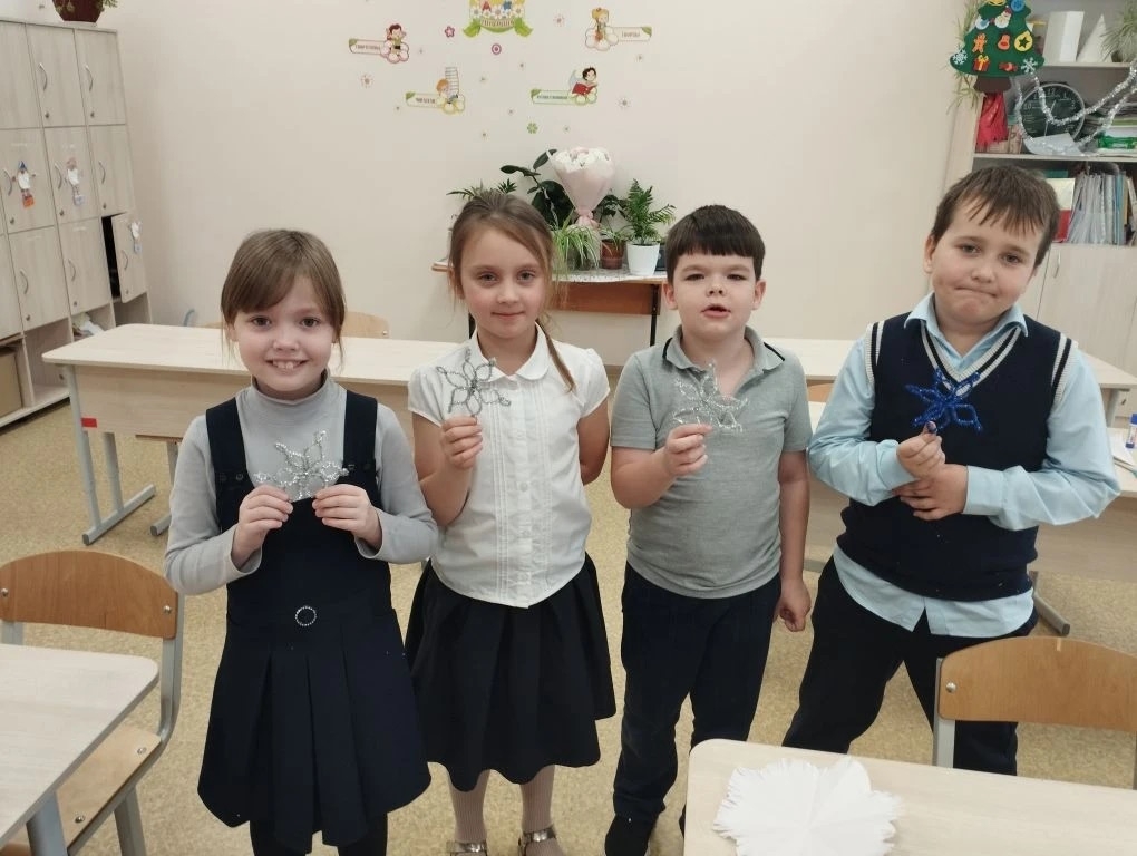 Это занятие объединило ребят из первого и третьего классов, пробуждая в них фантазию и мастерство. Вместе с преподавателем малыши поэтапно создали изящные снежинки, которые теперь украшают стены и классы нашей любимой школы. Спасибо, Наталья Викторовна!