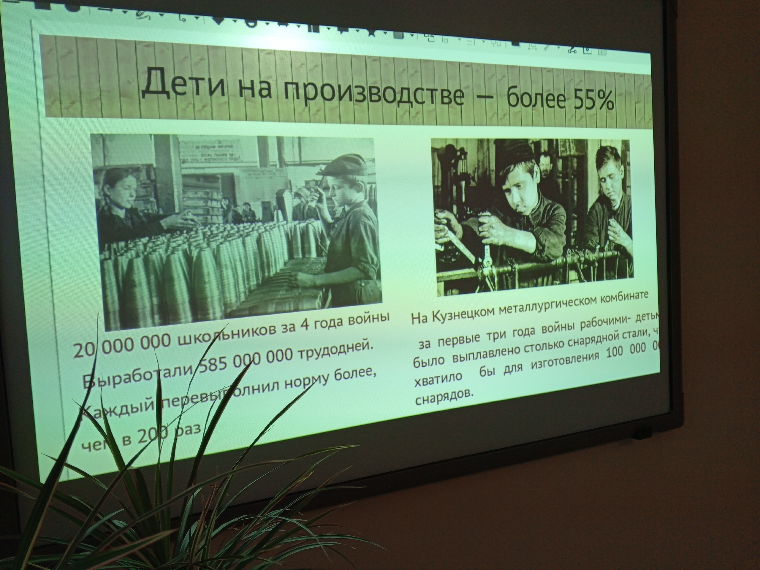 Вспомнили героические эпизоды Великой Отечественной войны. Ребята отметили, что единение народа, в т. ч. детей, в борьбе с фашизмом явилось залогом победы в войне.