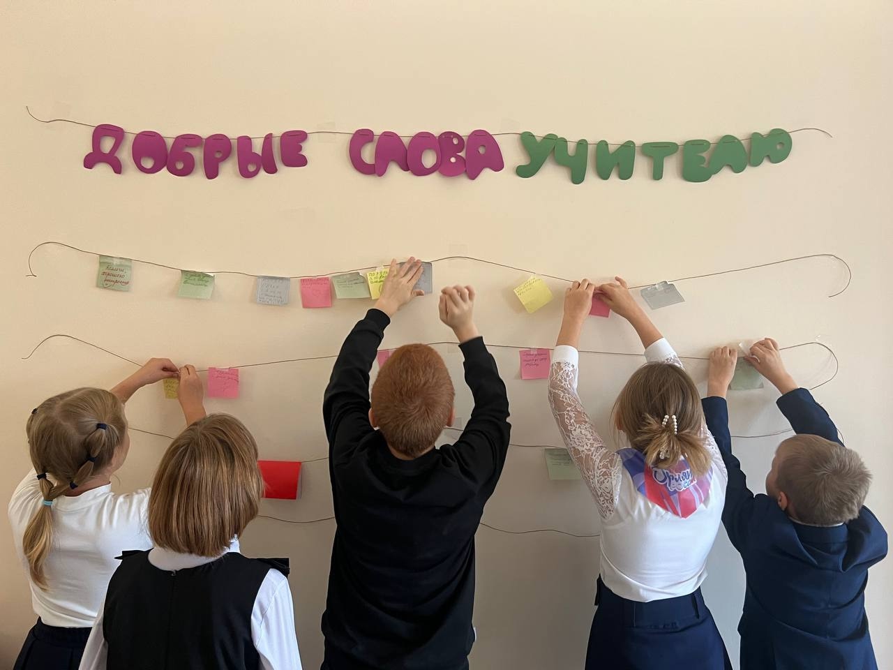 Сегодня педагогом-психологом нашей школы Ильиной Т.А. совместно с учениками 3 класса была создана для всей школы локация для приятных слов, положительных эмоций и хорошего настроения «Добрые слова учителю». На торжественной линейке для участия в добром деле были приглашены и дети, и педагоги школы. Как уверила Татьяна Александровна, добрые слова найдутся для каждого педагога школы, а педагоги их могут с большой радостью подарить друг другу. Приятное прочтение ждет каждого педагога в преддверии праздника «Дня учителя». 🧑🎓